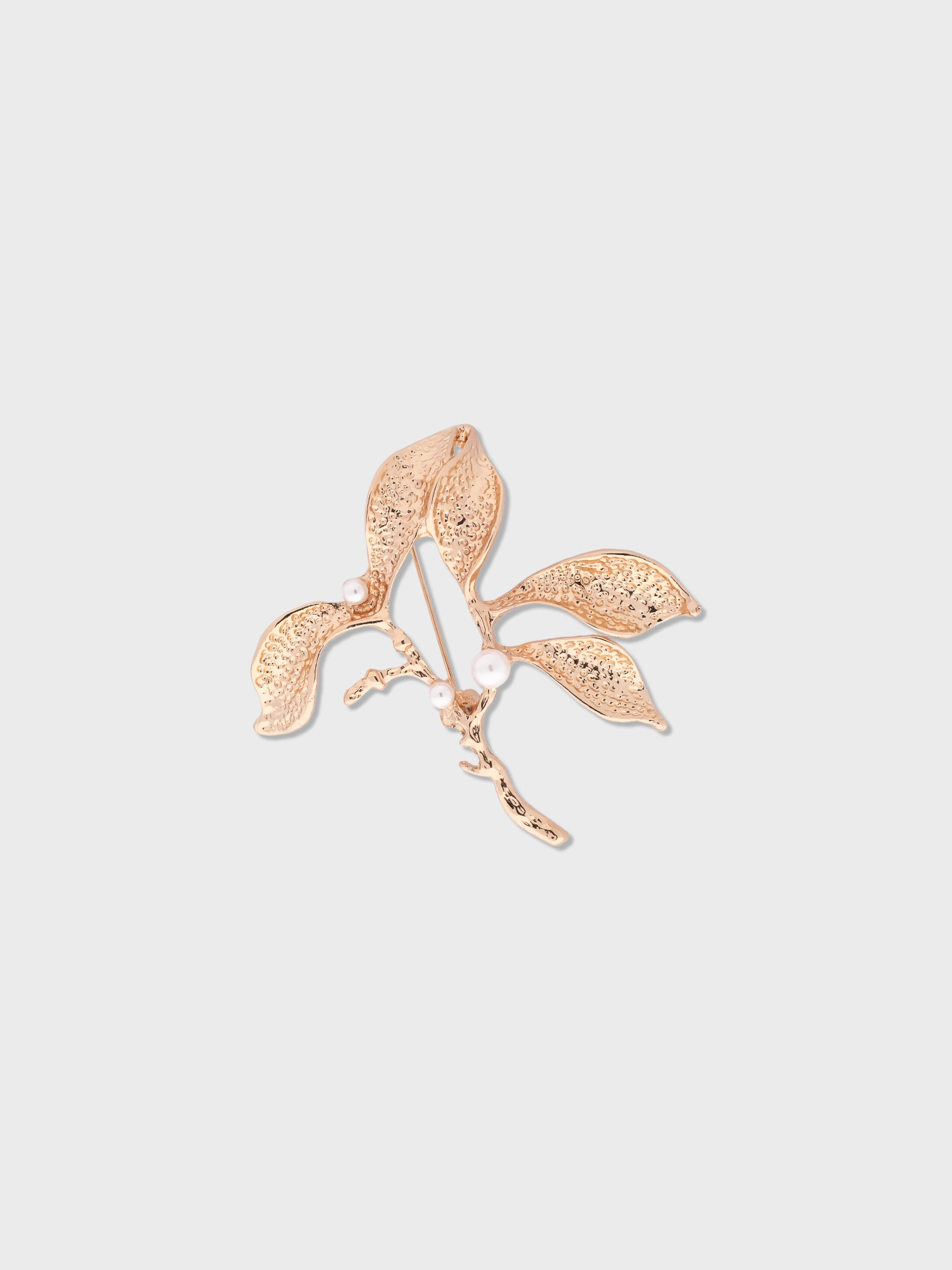 Тёплый золотистый оттенок подчеркивает естественность образа. Брошь можно носить на одежде или аксессуарах, добавляя луку поэтичный и выразительный акцент.